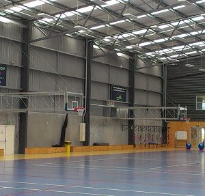 Side swing Backboards feature an International Size Glass Backboard manufactured to FIBA Regulations with padding for safety, mounted on a full steel frame. The backboard frame is supported by arms extending from a wall fixed support frame. Competition Sprung Loaded Hoop is included with this system. All systems are custom made to suit your venue.